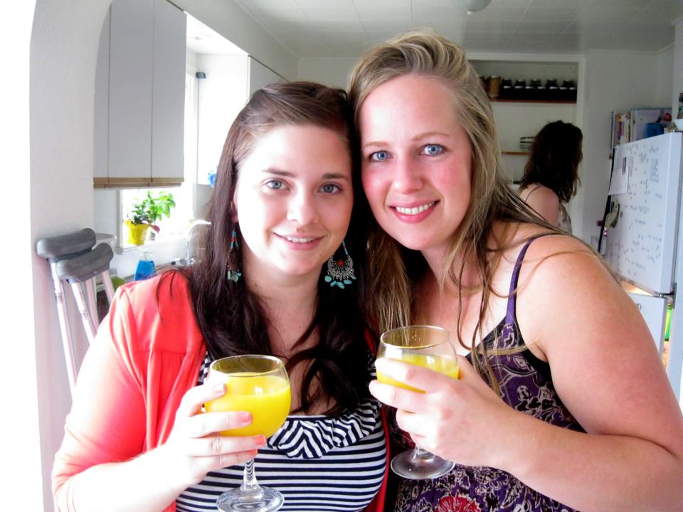 This is the morning-after of our biggest dinner to-date at the Jefferson House. Four tables were used, twenty-four people served, and eaten was zucchini soup, bread and butter, fresh pineapple, diced sweet potatoes with onions, mulled wine, and oatmeal raisin cookies. I love how generous my house of roommates is, and I love it when everyone comes together (including guests) to make table space and seating work. Two tables, many chairs, and a couple stacks of bowls, along with a handful of spoons, were added to ours to supply our every need. And a good time was had by all.